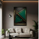 Abstraktes geometrisches Design kombiniert Grün- und Goldtöne und schafft eine Harmonie zwischen Natur und Luxus. Präzise Formen und lebendige Kontraste vermitteln Ausgewogenheit und Raffinesse.