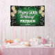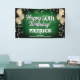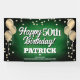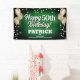 Ein lustiges Bannerzeichen für innen oder außen mit festlichen silbernen Metallballons auf beiden Seiten des Designs mit funkelnd, goldgelben Metallkonfetti auf einem reich strukturierten grünen Hintergrund für Ihr personalisiertes Geburtstagsbanner. Dieses Produkt verdoppelt sich als wunderbarer Meilenstein-Geburtstagssicheres.