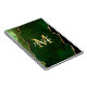 Dieses Notizbuch verfügt über einen eleganten und glamourösen Marmorhintergrund mit geode gemstone Details und Imitate Gold Glitzer Akzente. Das Monogramm kombiniert handgeschriebene Skripte mit modernen serifenlosen Schriftart für ein elegantes und raffiniertes Aussehen. Dies wird das ideale Geschenk, da es mit einem Namen und Initial angepasst werden kann. Die tiefen, grünen Farbtöne machen es perfekt für Herbst und Winter.