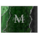 Dieses Schnittboard zeichnet sich durch einen eleganten und glamourösen Marmorhintergrund aus, der mit geode gemsteinten Details und Imitaten silbernen Glitzer Akzenten ausgestattet ist. Das Monogramm kombiniert handgeschriebene Skripte mit modernen serifenlosen Schriftart für ein elegantes und raffiniertes Aussehen. Dies wird das ideale Geschenk, da es mit einem Namen und Initial angepasst werden kann. Die tiefen, grünen Farbtöne machen es perfekt für Herbst und Winter.