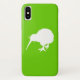 Weißer Kiwi-Vogel-Silhouette vor grünem Hintergrund. Fügen Sie eine benutzerdefinierte Textnachricht hinzu, um Ihr eigenes personalisiertes Geschenk zu erstellen.