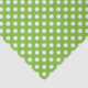 Gewebe mit einem Muster weißer Polka-Punkte auf grünem Hintergrund.