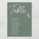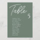 Moderne Sage Green Wedding Table Chart Cards sind die perfekte Touch für Ihren Hochzeitsempfang. Führe deine Gäste mit diesem einzigartigen Sitzplan zu ihren Plätzen. Die Karten sind ideal zum Aufhängen oder Anzeigen auf einem Brett oder einer Wand. Das Design verfügt über einen minimalen Script-Schriftart mit eleganter san serif in weiß auf einem sage-grünen Hintergrund. Das Design ist beidseitig bedruckt.