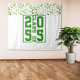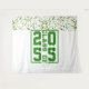 Erstellen Sie dauerhafte Erinnerungen mit einer Kamera und Ihrer Klasse ____ Sporttypografie Tapestry! Weiße Hintergrundfarbe, grüne Typografie, anpassbares Jahr, Imitate grün und goldfarbene Konfetti-Header oben.
