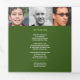 Einfaches, modernes Grafisches Beerdigungsprogramm in Grün- und Weißtönen. Ersetzen Sie den Beispieltext und zwölf Platzhalter-Fotos durch Ihre eigenen Fotos und Gedenksortierung, Nachruf, Lesen oder Gedicht, Bestätigungen und persönliche Daten. Weitere passende Erinnerungsstücke für die Beerdigung sind erhältlich. Design: www.mylittleeden.com