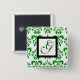 GREEN WHITE DAMASK BLACK SQUARE MONOGRAMM BUTTON