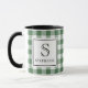 Green & White Plaid Black Typography Monogram Name Tasse