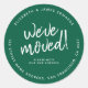 Green White Rustic Script We've Moved New Address Classic Round Sticker