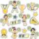 Freuen Sie sich auf dieses 15-Sticker-Paket mit Cheerleader und deren Auszeichnungen in Grün- und Gelbtönen.