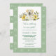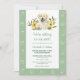 Wer keine Hunde und Babys? Diese Baby-Dusche ist eine großartige Wahl für Hundefreunde. Auf der Oberseite des Einladens lächelt ein gelber Labrador, umgeben von bunten Blumen, an. Unter dem zeichn des Hundes, der Untertitel "Wir fügen unserem Pack hinzu!" kündigt die lustige Gelegenheit zu Ihren Gästen an. Eine geschlechtsneutrale grüne Grenze mit weißen Pfotendrucken und Babyfüßen umgibt den Text. Mit dieser niedlichen, welpen Dusche feiern Sie das Kommen Ihres neuen Babys.