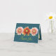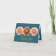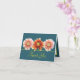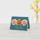 Drei schöne Korallenrosa und orange Dahlien Blume Set vor einem Aqua-grüne Hintergrund. Der gelbe Farbtext verwendet einen attraktiven Schriftzeichen-Schriftart. Die Blume decken die Vorderseite dieser Karte ab, die als Dankeschön-Karte für Hochzeiten, Geburtstagskarte oder jede andere Karte Ihrer Wahl verwendet werden kann. Personalisieren Sie es mit Ihrem Text und/oder Bildern, um es zu einem einzigartigen zu machen!