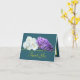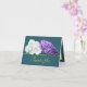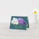 Ein wunderschönes Bouquet mit lila Wisteria und weißen Rosenbäumen in einem aquagrünen Hintergrund. Der gelbe Grußtext verwendet einen attraktiven Schriftzeichen-Schriftart. Die Blume decken die Vorderseite dieser Karte ab, die als Dankeschön-Karte, Geburtstagskarte oder jede andere Karte Ihrer Wahl verwendet werden kann. Personalisieren Sie es mit Ihrem Text und/oder Bildern, um es zu einem einzigartigen zu machen!