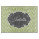 Kreieren Sie ein einzigartiges Geschenk mit einem grünen Zickzack Personalisierten Glass Cutting Board. Die Schnittpappe zeichnet sich durch einen grünen Zickzack Hintergrund und eine verzierte graue Markierung aus, die mit Ihrem Namen und Monogramm personalisiert werden kann. Weitere Artikel sind auch mit diesem Design erhältlich. Bitte kontaktieren Sie mich direkt für Hilfe bei der Personalisierung.