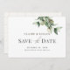 Diese elegante und romantische Hochzeit speichern Sie die Dattelkarte mit einem weißen Hintergrund mit Grün und Artischocken in Aquarell. Die Rückseite weist einen weißen Hintergrund mit geometrischen Mustern in Imitat Gold auf. Personalisieren Sie es für Ihre Bedürfnisse. In meinem Geschäft finden Sie passende Produkte.