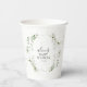 Celebrate with elegance using our personalized baby shower paper cups! Adorned with a delicate watercolor greenery wreath, they're a blend of nature's charm and refined design. Inside this leafy embrace, the mom-to-be's name is beautifully showcased in modern script, complemented by "Baby Shower" in a classic serif below. More than a cup, it's a testament to joy, anticipation, and the beauty of new beginnings. Toast to life's special moments in style!