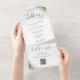 Greenery Elegant Script Hearts QR Code Wedding All In One Einladung