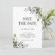Elegantes grünes Foto auf der Rückseite Save the Date mit Aquarell Eukalyptus-Blätter und sanftem botanischem Blattwerk. Dieses elegante Design mit moderner smaragdgrüner Palette eignet sich hervorragend für Hochzeiten im Frühjahr oder Sommer. Eine zeitlose Wahl für Paare, die eine naturbelassene, romantische und von Blattwerk inspiriert Hochzeitsstätte Liebe haben. Koordiniert wunderschön mit passenden Einladungen und RSVP-Karten aus derselben Sammlung.