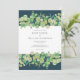 Diese schicke botanische Hochzeitseinladung mit zarten Aquarellfarben-Eukalyptus-Blätter kann mit Ihren speziellen Hochzeitstagen-Informationen personalisiert werden, auf der Rückseite mit silberfarbenem Hintergrund. Entwickelt von Thisisnotme©