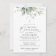 Invite friends and family in style and set the tone for your special day with this elegant first holy communion invitation. Design features eucalyptus leaves and greenery on white background.
