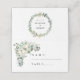 Elegant folded greenery and eucalyptus wedding place card with soft watercolor botanicals and blank lines for handwritten guest details.