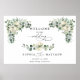 Elegant horizontal greenery eucalyptus wedding welcome poster with soft watercolor leaves. Perfect for ceremony or reception entrances.