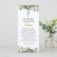 Marca un hito con este separador de libros personalizable adornado con hojas verdes en acuarela y una cruz encantadora. Perfecto para compartir la alegría de la Primera Comunión con seres queridos. Personaliza con el nombre del destinatario, mensaje y fecha. Disponible en español. Ein Meilenstein in diesem individuell gestaltbaren Lesezeichen, das mit zauberhaften grünen Blätter und einem reizvollen Kreuz geschmückt ist. Ideal, um die Freude der ersten Kommunion mit den Lieben zu teilen. Personalisieren Sie Ihre Daten mit dem Namen, der Nachricht und dem Datum des Empfängers. Verfügbar auf Spanisch.