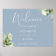 Greenery Floral Dusty Blue Wedding Welcome Sign Poster