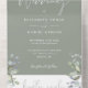 Greenery Floral Elegante Script Sage Green Wedding All In One Einladung