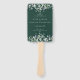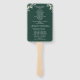 An elegant wedding program hand fan featuring pretty lilac floral greenery and your wedding details set in classic, elegant text on an emerald green background. Designed by Thisisnotme©