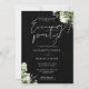 Diese elegante, schwarz-weiße botanische Abend-Blumenzelt-Party Einladung kann mit Ihren Informationen in der schicken Typografie und Ihr Foto auf der Rückseite personalisiert werden. Entwickelt von Thisisnotme©