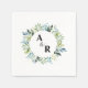 Greenery Floral Monogram Custom Wedding Cocktail Serviette