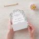 Das Ganze in einer Hochzeitseinladung mit hübschem, grünem Blattwerk und eleganter moderner Typografie. Die Einladung enthält eine perforierte RSVP-Karte, die Ihren QR-Code für Ihre Hochzeitswebsite enthält. Entwickelt von Thisisnotme©