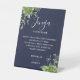 Greenery Floral Navy Blue Jenga Wedding Gästebuch Sockelschild