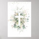 This design features an illustration of green and gold foliage in watercolor style. Above the leaves - confetti adorns the top of the card (their images can be removed). On the green foliage there is an image of a Cross.