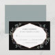 Diese trendige und elegante Hochzeitskarte besticht durch eine goldene geometrische Form der Imitate, umgeben von schönen grünen Zweigen auf einem dunklen, schwarzen Hintergrund.