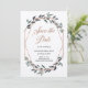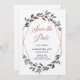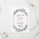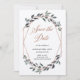 Diese trendige und elegante Hochzeitskarte mit einer geometrischen Form der Imitate Rose, umgeben von schönen grünen Zweigen, mit stilvollen Imitaten Rose goldene Schrift Typografie auf dem Kraftpapiertyp.