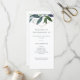 Dieses trendige und elegante Hochzeitsprogramm besticht durch eine vergoldete geometrische Form der Imitate, umgeben von wunderschönen grünen Zweigen.