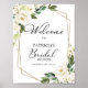 Schöne grüne eucalyptus weiß, blumengeometrisch Brautparty Willkommensschild. Einfach mit Ihren Daten personalisieren. Bitte kontaktieren Sie mich per Chat, wenn Sie Fragen zum Kunstwerk haben oder eine Anpassung benötigen. BITTE BEACHTEN SIE: Für Unterstützung bei Bestellungen, Versand, Produktinformationen usw. wenden Sie sich direkt an den Zazzle Kundenservice https://help.zazzle.com/hc/en-us/articles/221463567-How-Do-I-Contact-Zazzle-Customer-Support-.