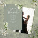 Diese elegante botanische Weide verlasst eine goldene Bogen-Save the Date-Einladung, die mit Ihren Informationen in der schicken Typografie mit Ihrem besonderen Foto auf der Rückseite personalisiert werden kann. Entwickelt von Thisisnotme©