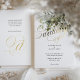 Diese exquisite Hochzeitseinladung besticht durch ein edles goldfarbenes Kalligraphiedesign auf einem knalligen weißen Hintergrund, das Eleganz und zeitlosen Charme ausstrahlt. Das wunderschön fließende Drehbuch fügt eine elegante Touch hinzu, die sich perfekt für formelle und luxuriöse Hochzeiten eignet. Der klassische Serif-Schriftart ergänzt die Goldtypografie und schafft so eine ausgewogene und polierte Ästhetik. Die Rückseite der Einladung beinhaltet ein stylisches @ monogram Detail und eine Online-UAWG, sodass die Gäste leicht Zugang zu den Hochzeitsdetails über den bereitgestellten Website-Link. Dieses minimalistische, aber opulente Design Anzug eine Vielzahl von Hochzeitsthemen, von modern und elegant bis Vintag und traditionell. Diese Einladung ist vollständig anpassbar und in hochwertigen Papierveredelungen inklusive Matte, Leinen und Perlenschimmer erhältlich. So wird ein luxuriöses Ambiente für Ihren besonderen Tag garantiert.