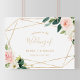 Dieses grün & goldfarbene, geometrisch elegante Begrüßungspaket ist perfekt für eine rustikale Hochzeit. Das Design besteht aus hübschen Rose in Weiß, Rosa und Rosa, die von Hand gestrichen wurden, und einer Touch Grün, vergoldeten geometrischen Rahmen, die künstlerische Schönheit inspirierend. Machen Sie dieses Poster zu sich, indem Sie den Namen der Braut und des Bräutigams und das Datum der Hochzeit einschließen.