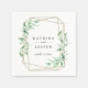Eleganter geometrischer Rahmen mit Aquarellgrün und personalisierten Papierservietten. Entwurfsfeatures, Vorlagentextzeilen für Namen und Datum.
