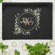 Greenery Gold Monogram Chic Script Black Geschirrtuch