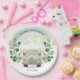 Dieses elegante Design besticht durch seine elegante Aquarell-Vegetation, festliche pastellgrüne Ballons und einen schicken Vintage-Wagen. Ändern Sie die Formulierung, um Ihren Anlass Anzug!
