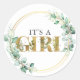 Greenery It a Girl Gold Eucalyptus Baby Shower Runder Aufkleber