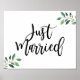 JUST MARRIED Schild mit einem schönen grünen Kalligraphie-Design für Ihre Hochzeit.