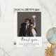 Senden Sie eine herzliche Nachricht mit diesem Grün danke Ihnen Hochzeitskarte, mit einem modernen Foto-Layout und Platz für eine persönliche Note. Ideal für minimalistische oder botanische Hochzeiten. Ein stilvoller Weg, um den Gästen mit einer maßgeschneiderten Touch zu danken.