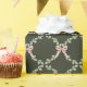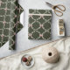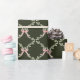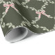 Dieses niedliche Verpackungspapier zeigt ein zartes und elegantes Muster mit ineinander greifenden, in Gittergitter angeordneten Grünmotiven. Jede Kreuzung des Gitters wird durch einen weichen rosa Bogen ergänzt.