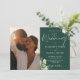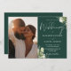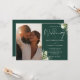 Diese elegante smaragdgrüne Blumenzettel kann mit Ihrem besonderen Foto, Informationen in schicken Typografie mit Ihren Angaben zur Hochzeitswebsite und Ihrem QR-Code auf der Rückseite personalisiert werden. Entwickelt von Thisisnotme©