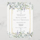 Grüne Aquarellfarben Blütenschlucht lilac Hochzeitseinladung mit hübschen Salbei- und Lila-Blätter, die über einen eleganten Goldrahmen schlüpfen und Ihr Set in klassisch elegantem Text einschließen. Die Rückseite hat Ihre Hochzeitswebsite und UAWG, und QR-Code. Entwickelt von Thisisnotme©